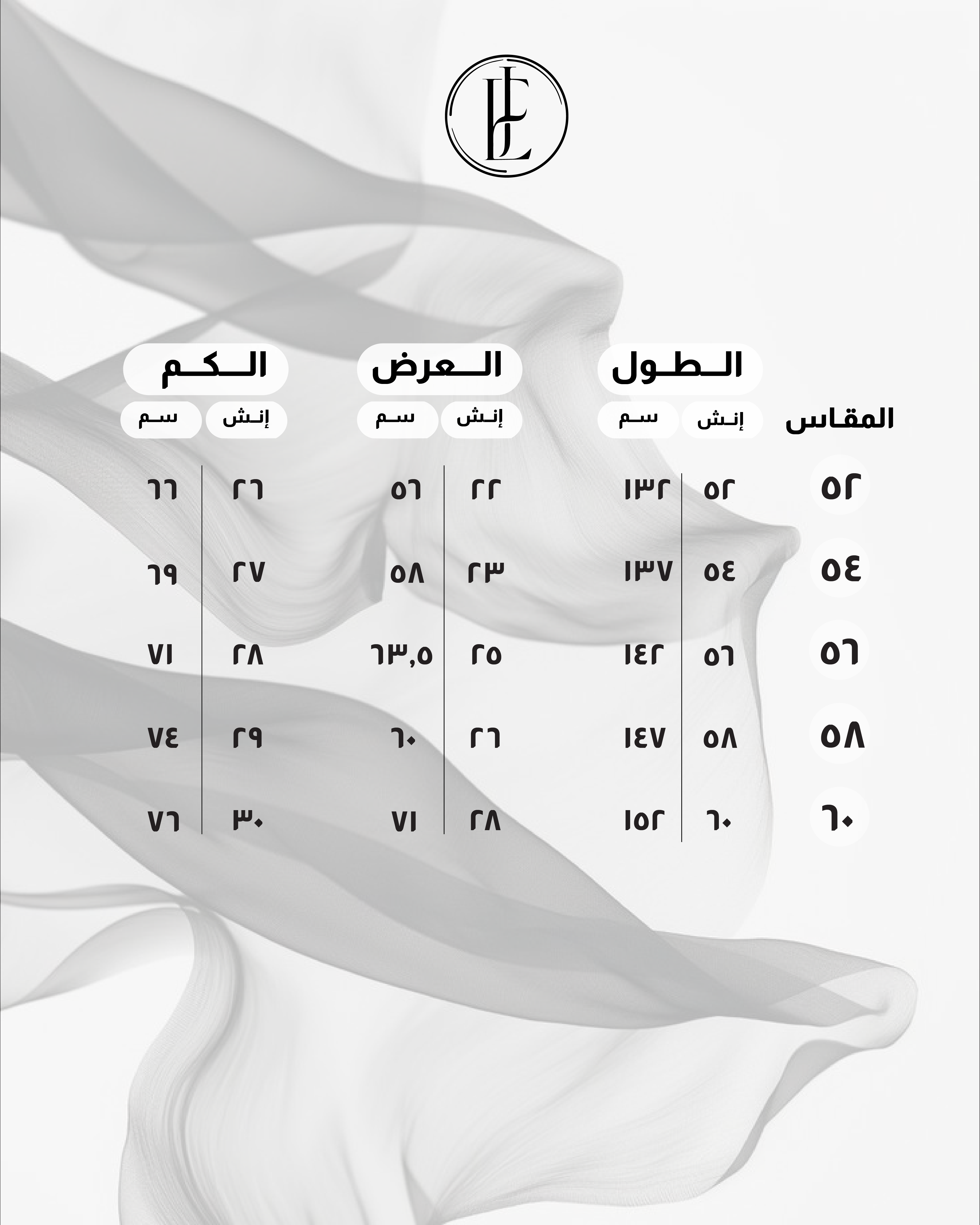 - الأكمام: واسعة ومزينة بنقوش متناسقة.
